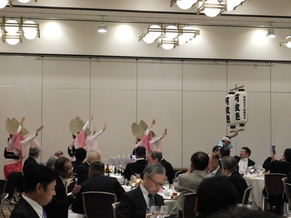 祝宴は和やかに進み、終宴30分前頃にお囃子と共に「阿波踊り」の踊り子が賑やかに登場した。