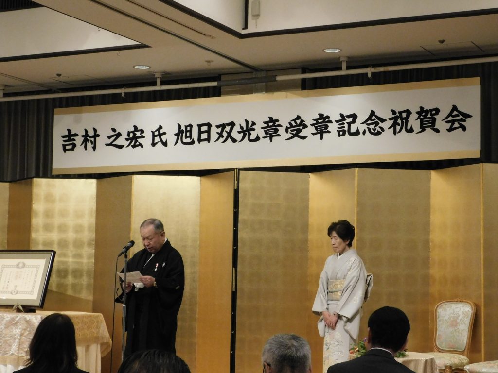 今春、中小企業振興により旭日双光章を受章された吉村理事長の祝賀会が去る9月14日(日)に開催されました。