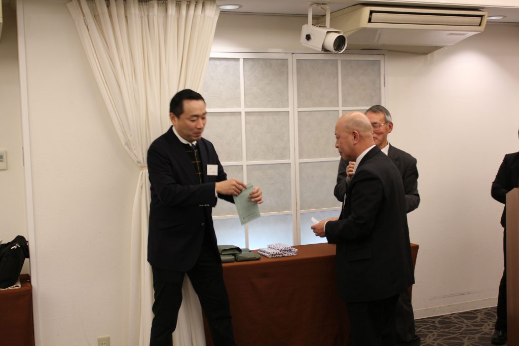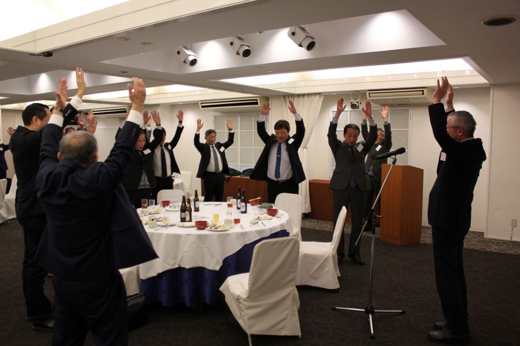 閉宴予定の18時30分になり、竹本県職業能力甲斐名都専務理事の挨拶、万歳三唱で閉会した。